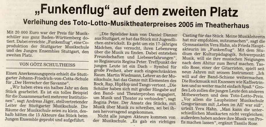Das Musiktheater „funkenflug“ hat den 2. Preis beim Toto-Lotto-Wettbewerb für Musiktheater gewonnen!